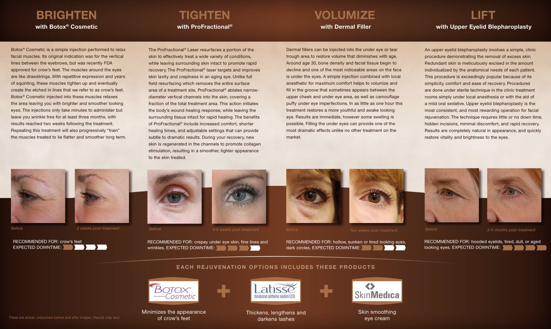 From pop-up banners to rack cards, postcard promotions to appointment cards, the medspa has an array of printed pieces that all coordinate in their established look to provide consistency in the marketplace.